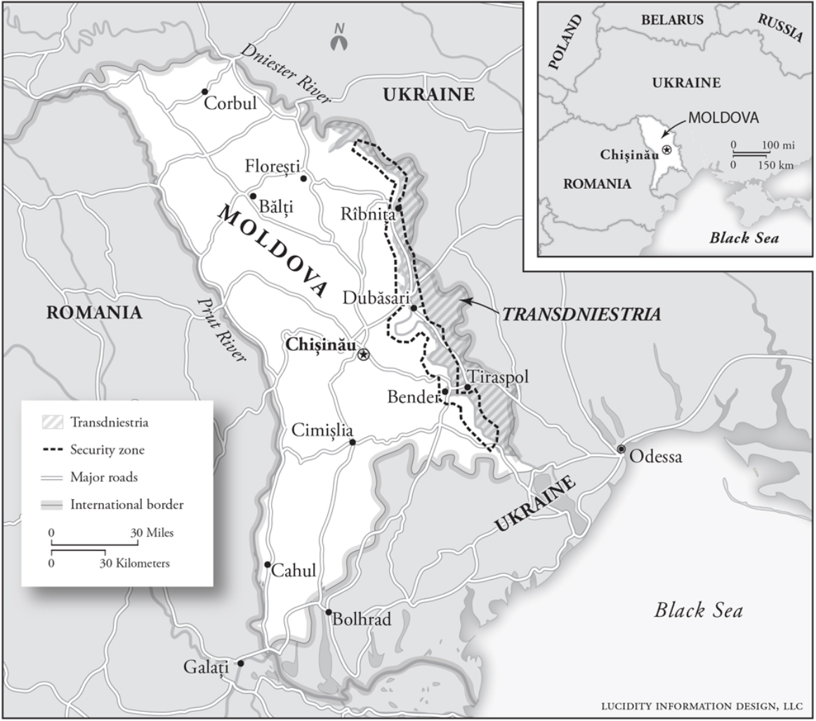 ロシア、モルドバ、沿ドニエストル共和国の平和維持部隊が駐屯する中立非武装地帯となっています。